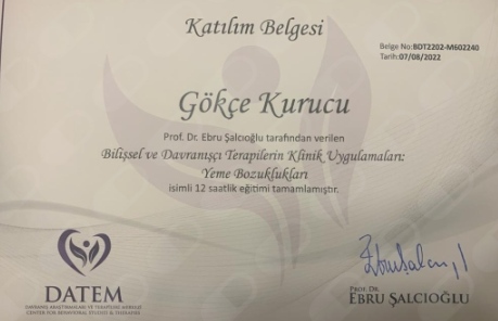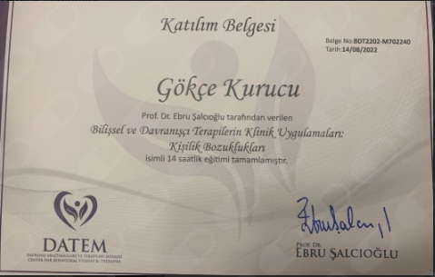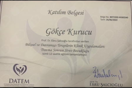 Gökçe Hocam gerçekten harika bir terapist. Terapist arayışınız varsa gözüm kapalı önerdiğim tek kişidir. İlk etapta terapiye başlarken tedirgindim online seansta rahat edebilir miyim diye fakat Gökçe hocam bütün korkularım geride bıraktı. Gökçe hanımla seanslarım da kendimle yüzleşemediğim kaçtığım konuları bile çok rahat anlatabiliyorum. O yüzden diğer terapistlerden farkını çok rahat görebiliyorum. Aileme çevremdeki insalara hep verici olup kendi hislerimi yoksayan hep çevremdekilerin isteklerine dönük yaşayan, travmalarımı halının altına süpüren biriydim. Gökçe hocam beni kendime döndürüp yoluma ışık olduğu yaralarımla yüzleşip onları nasıl iyileştirmem konusunda yolum ışık tutuğu için ve bana verdiği emekler için minnettarım