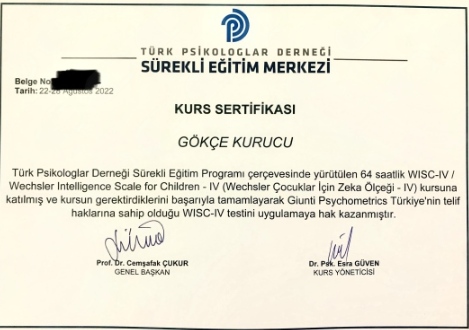Gökçe hanım ile 6 yaşındaki oğlum için görüşme sağladık. Kendisi oğlumu gözlemledi, dinledi ve süreç ile ilgili bizi yönlendirerek bize destek sağladı.oğlum için Wisc 4 testi uygulandı, okul öncesi döneminde kendisinin de desteği ile okul hayatına başladığında daha etkili ve sağlıklı eğitim süreci için bizleri yönlendirerek çok destek oldu. Süreç ile ilgili her aşamada bilgilendirmesi ve birebir ilgilenmesinden çok memnunuz. Gökçe ablamız ile iyi ki yollarımız kesişti