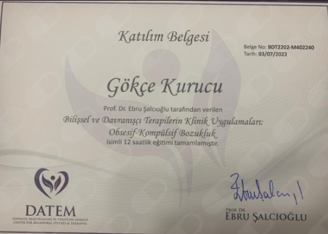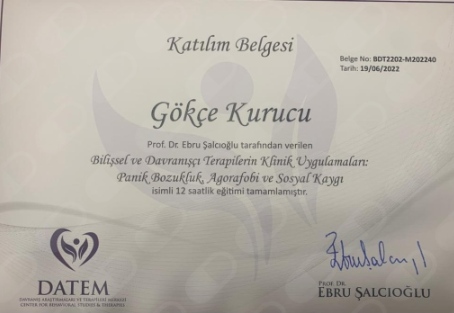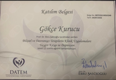 Ben de uyku problemi ve kaygı problemi vardı baş ağrısı mide ağrısı kol ağrısı günlük hayatımı etkileyen şeylerden dolayı gittim uyku problemim düzene girdi bedensel sıkıntılarım geçti. Kaygımı ve stresimi artık kontrol edebiliyorum. Uyku problemim tamamen çözüldü 1-2 senedir uyuyamıyordum başladıktan hemen sonra düzeldi. Kendisine referans alarak gittim çok tatlı ve çok iyi insan aranızda bağ oluşturmak çok önemli. Daha öncede deneyimim oldu 12 seans almama rağmen Gökçe Hanımla çok daha iyi oldum onu bulduğum için çok mutluyum çok iyi bir psikolog.